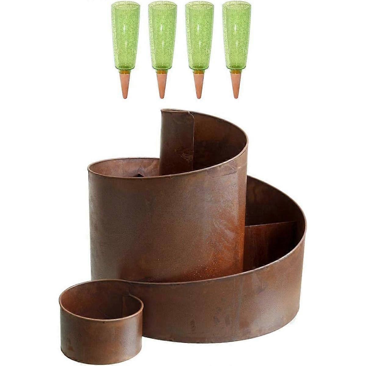 Kräuterspirale mit 4 Copa Wasserspender Naturrost Kräuterschnecke Hochbeet Pflanzenring (Grün)