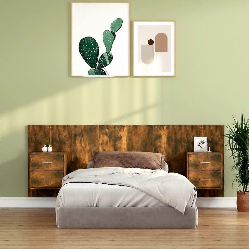 Kopfteil mit Nachttischen Räuchereiche Holzwerkstoff