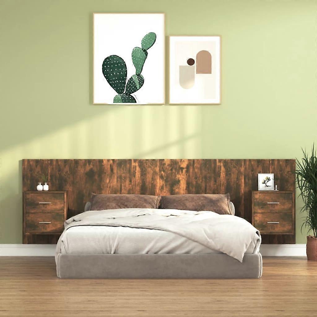 Bettkopfteil mit Nachttischen Räuchereiche Holzwerkstoff