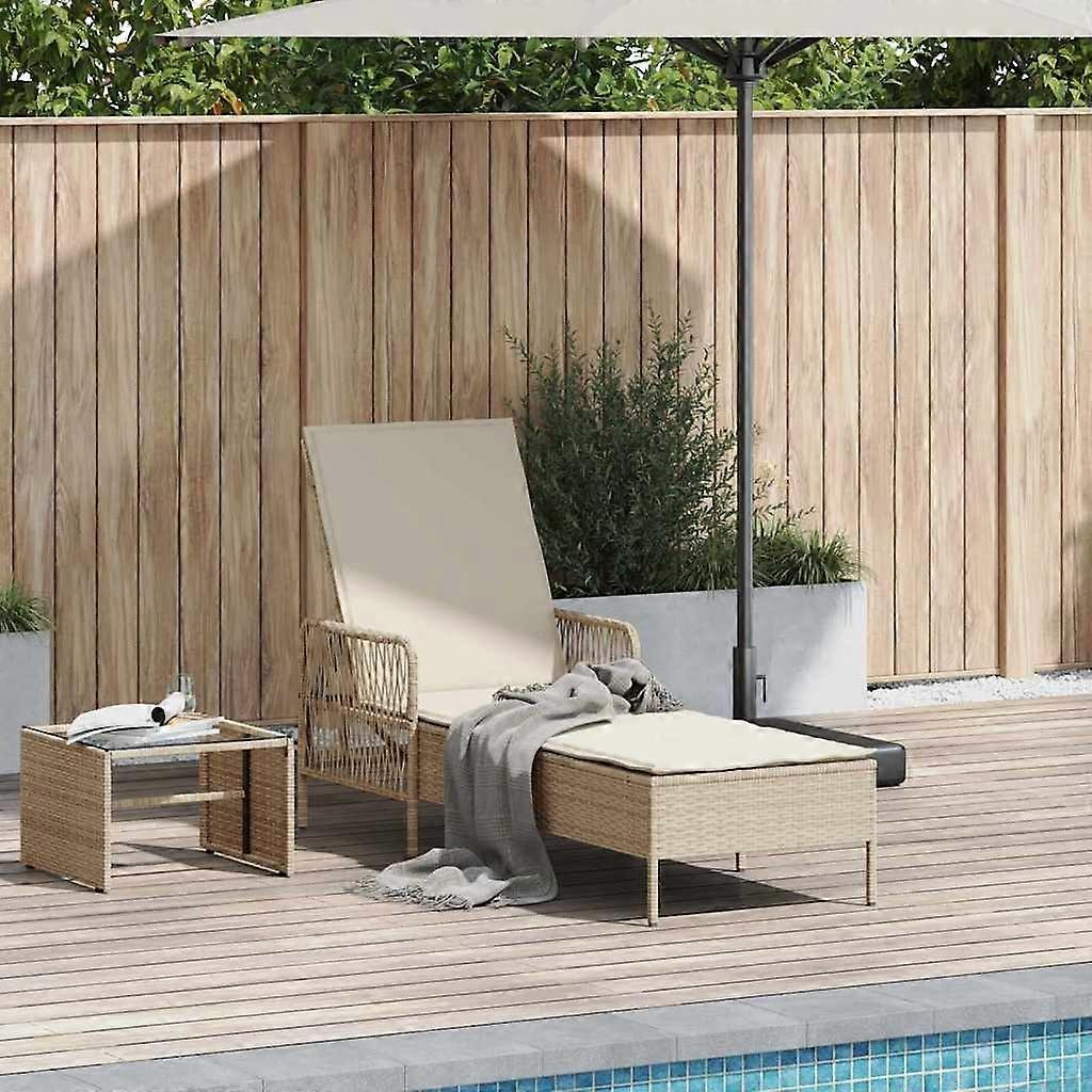 Sonnenliege Beige und Cremeweiß 55 x 200 x 92 cm Poly-Rattan