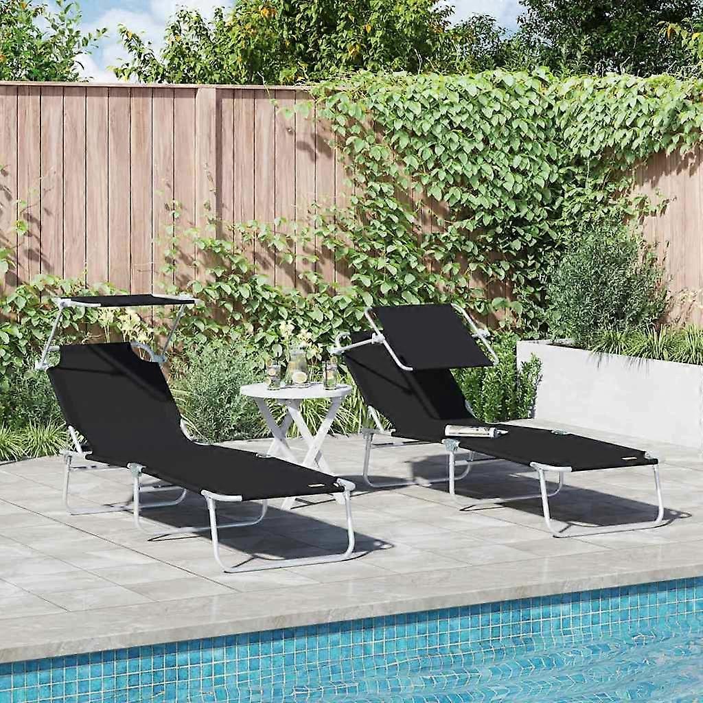 Sonnenliege 2 pcs Schwarz 58 x 188 x 77cm Polyester