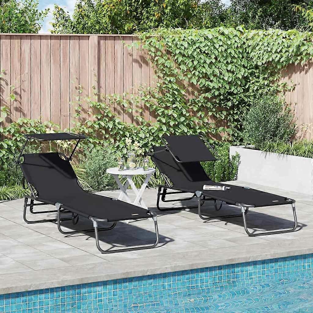 Klappbare Sonnenliege 2 pcs Schwarz 190 x 57 x 81 cm Oxford