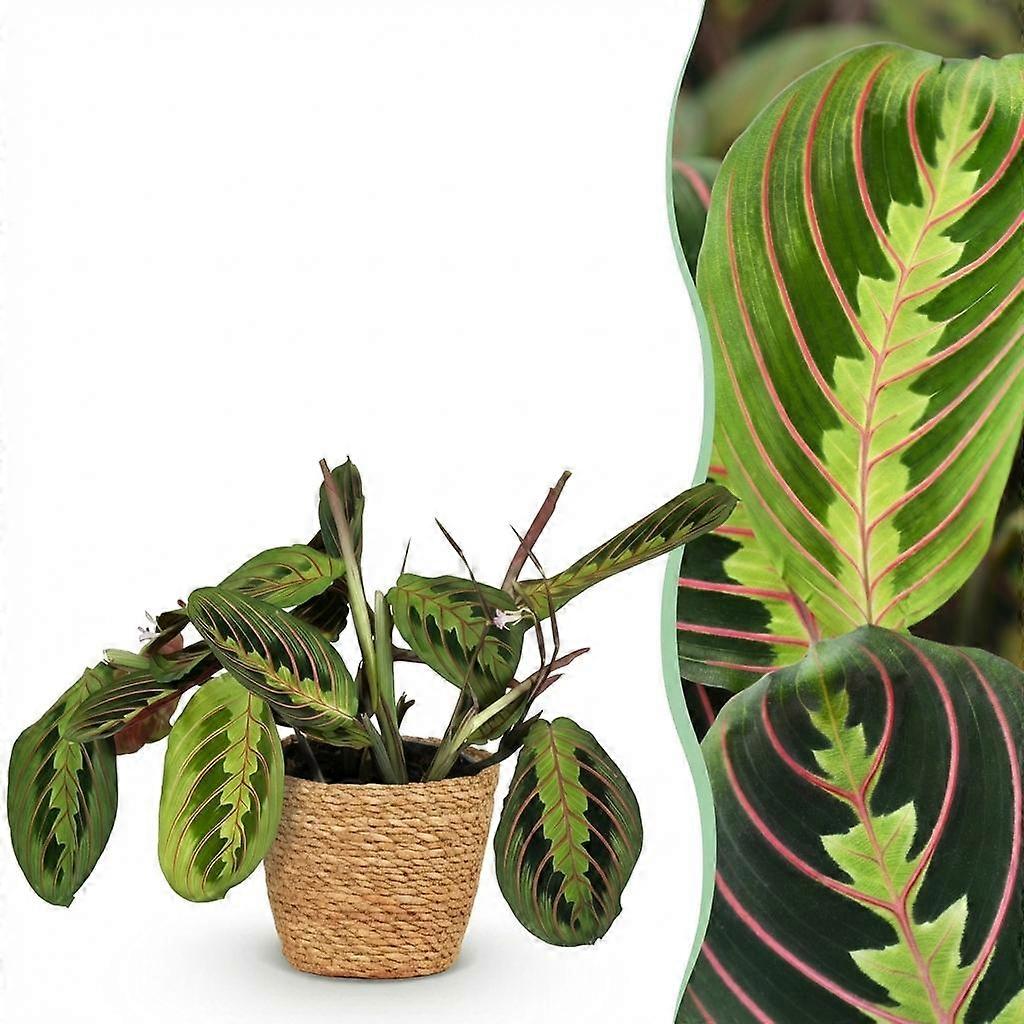 Maranta Fascinator Tricolour - Gebedsplant - Huisdiervriendelijke Plant - Groen - met Mand - 25cm - Ø12cm - Kamerplant - Arrangement - Plant met pot Breng kleur en leven in huis met de Maranta Fascinator Tricolour 🌿 Deze prachtige plant, ook wel bekend als de gebedsplant, valt direct op door haar unieke bladeren met groene, paarse en roze tinten. Overdag staan de bladeren wijd open en 's avonds sluiten ze zich – alsof de plant haar handen vouwt voor het slapengaan. Een levend kunstwerk in je woonkamer Met een hoogte van 25 cm en een potmaat van 12 cm past de Maranta perfect op een plank, vensterbank of gezellig hoekje in huis. De plant wordt geleverd in een mooie mand, zodat je hem direct een mooi plekje kunt geven. Unieke eigenschappen: Kleurrijke bladeren met een bijzondere tekening 🍃Levendige plant: de bladeren bewegen mee met het daglichtGeleverd met stijlvolle mandCompact formaat, dus ideaal voor kleinere ruimtesHuisdiervriendelijk: niet giftig voor katten en honden 🐾 Deze plant is volledig veilig voor jouw huisdieren en dus perfect voor dierenvrienden die ook van groen houden. ✔ Verzorgingstips: Zet de Maranta op een lichte plek, maar vermijd direct zonlichtHoud de grond licht vochtig; geef bij voorkeur gefilterd of lauw waterDe luchtvochtigheid mag wat hoger zijn – besproei de bladeren af en toeGeef 's winters wat minder water Een fijne, makkelijk te verzorgen plant die ook nog eens veilig is voor je huisdieren? De Maranta Tricolour is jouw groen maatje 🌱