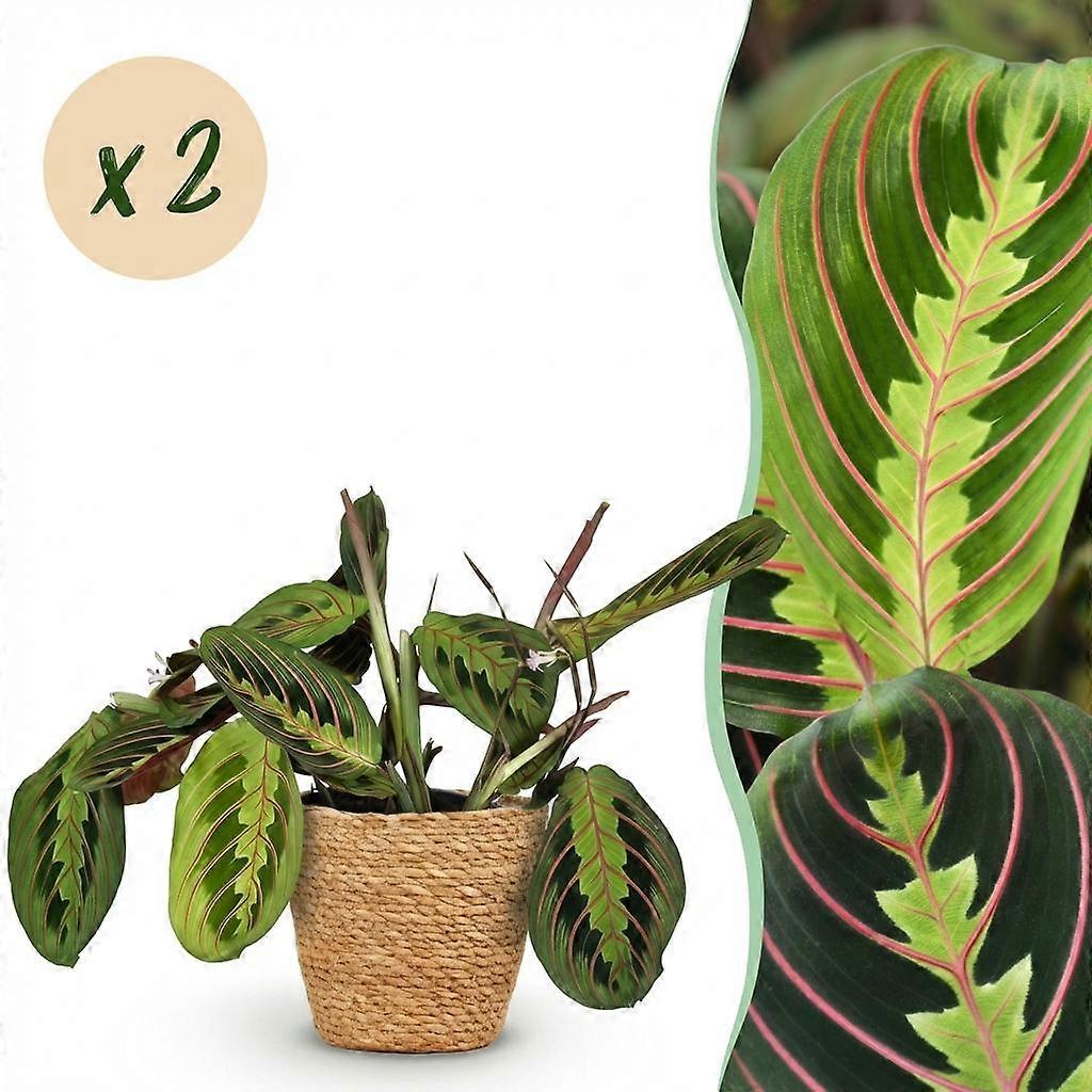 Maranta Fascinator Tricolour - Gebedsplant - Huisdiervriendelijke Plant - Groen - 2 Planten - met Mand - 25cm - Ø12cm