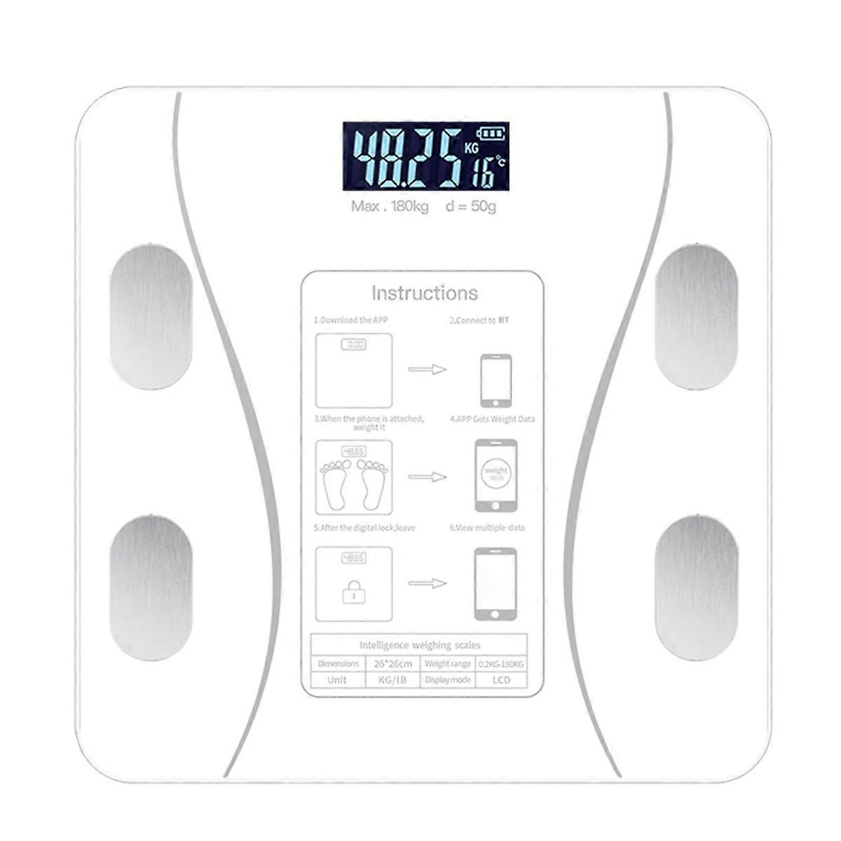 INF Smart kroppsvåg kompatibelt med Type-C-laddning, tooth 4.0+, LCD-belysning, 0.2-180kg räckvidd