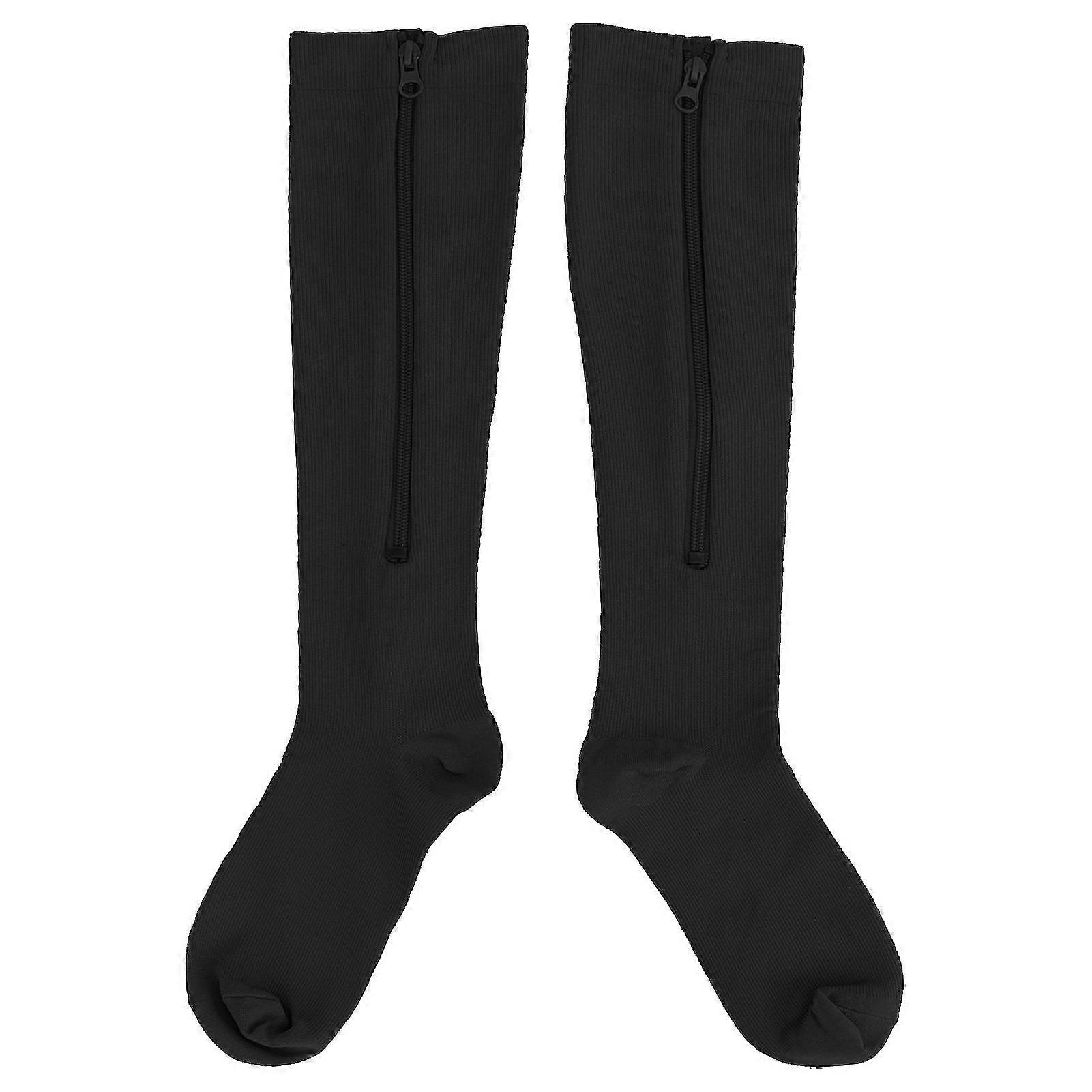 1 Pair 1520mmhg Closed Toe Zipper Compression Socks Women Knee High Compression Stockings
