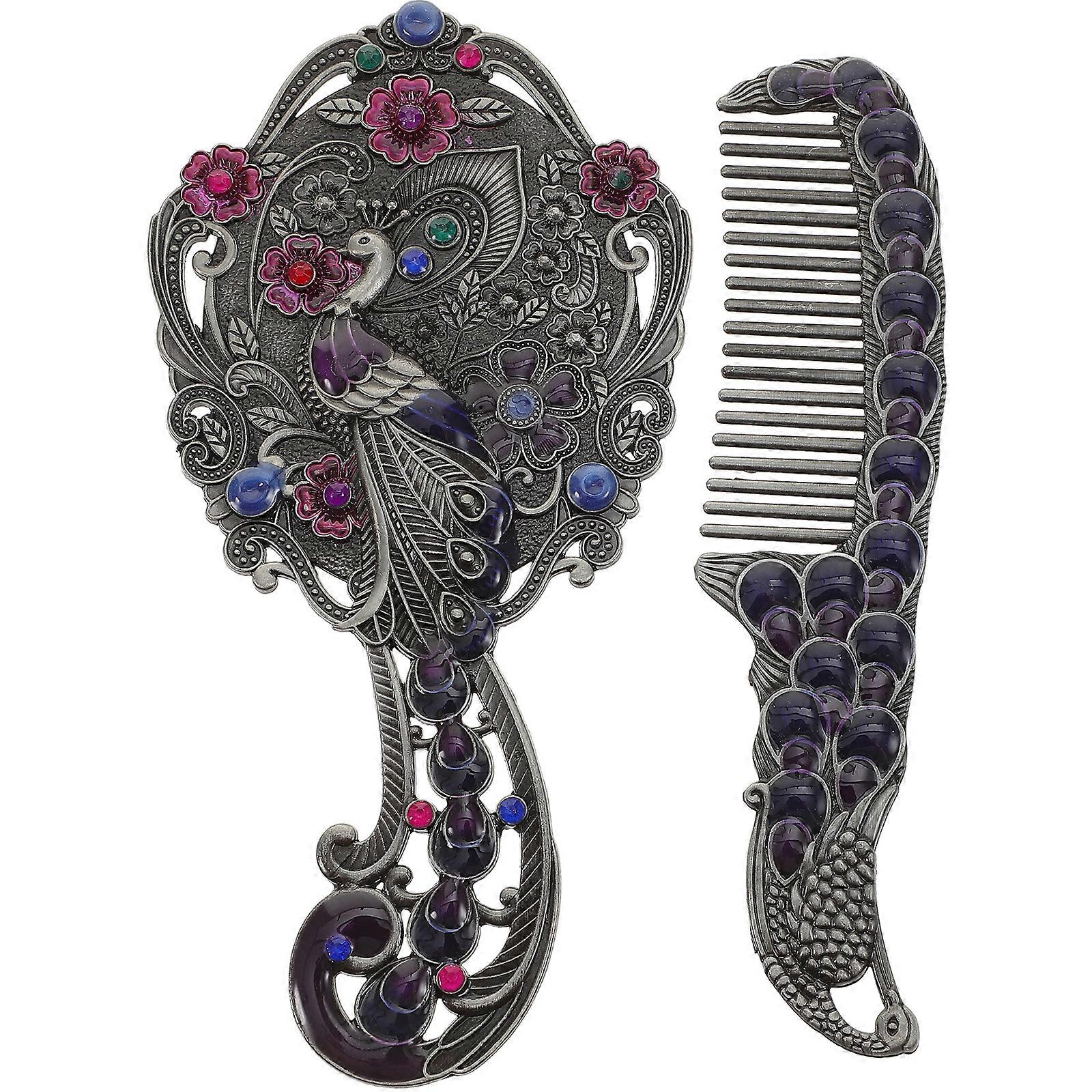 1 Set Creative Makeup Mirror Handheld Retro Deisgn Cosmetic Mirror with Comb