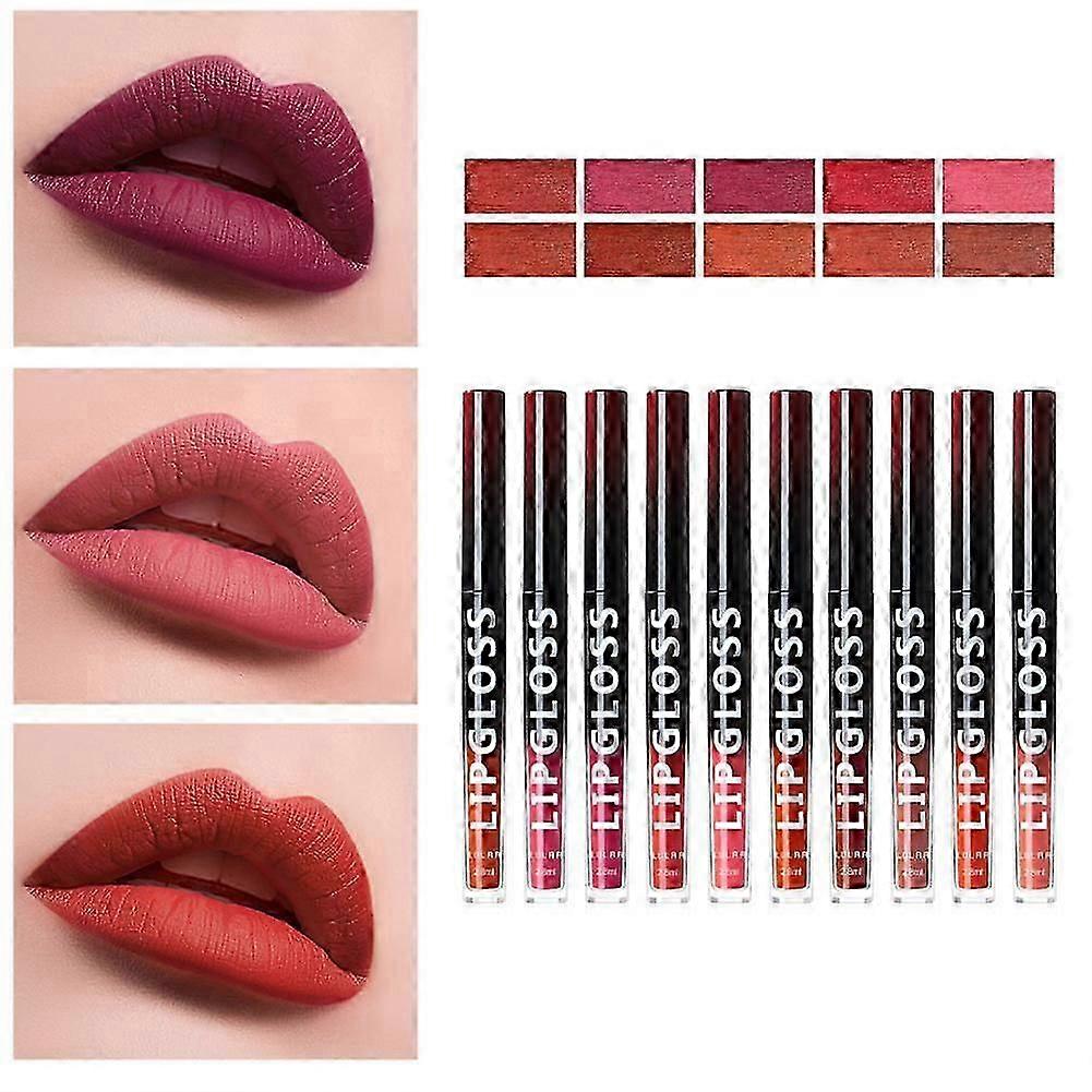 10 Color Lip Gloss Set Matte Lip Glaze Long Lasting Liquid Lipstick Non Stick Cup Lipgloss