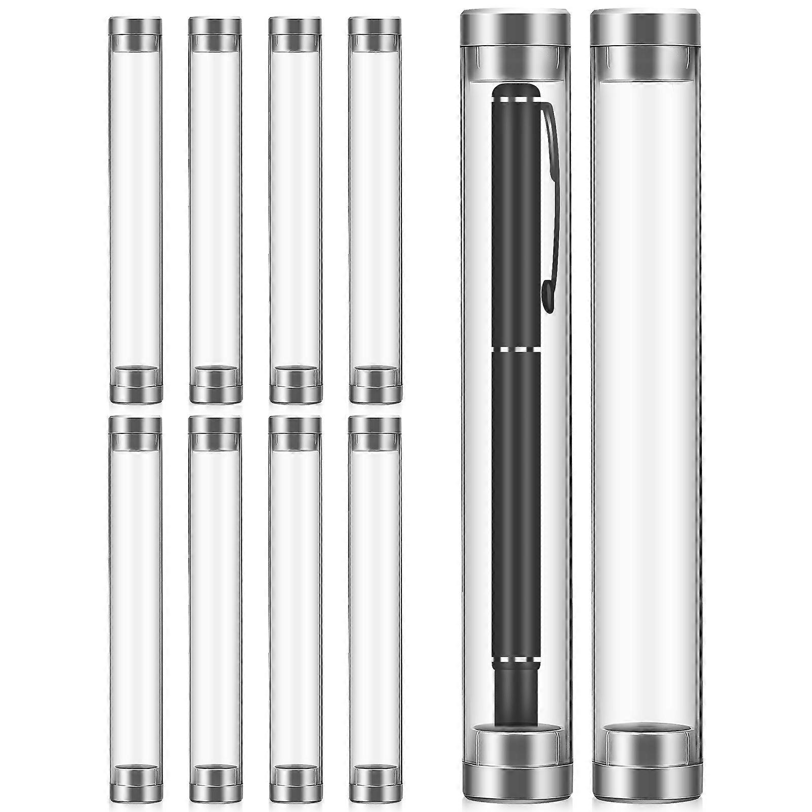 10 Pcs Acrylic Pen Cases Clear Empty Single Pen Display Storage Cases Cylinder Tube Ballpoint Pen Holders
