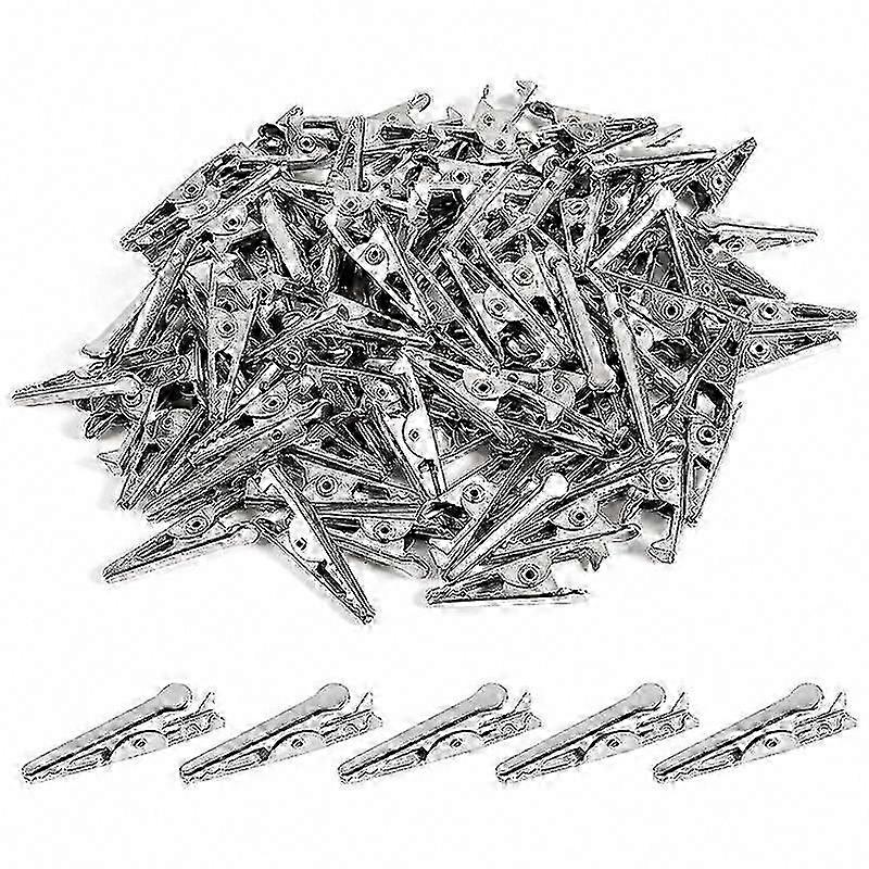 100PCS 1.06IN/27mm Mini Metal Alligator Clips, Silver Tone Plated Test Line Spring Clips for Electronics