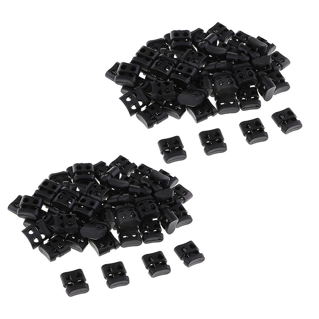 100pcs Black Plastic Non-slip Double Hole String Cord Locks for Shoelace Bag