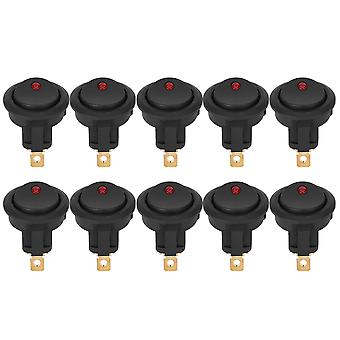 10pcs 12V Waterproof SPST LED Spot Round ON/OFF Rocker Switch 3 Pin Silver Terminal