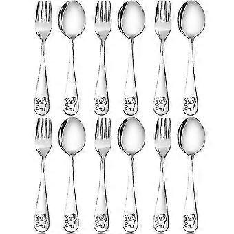 12 pezzi di posate per bambini in acciaio inossidabile, posate sicure per bambini, set di cucchiai e forchette per bambini piccoli