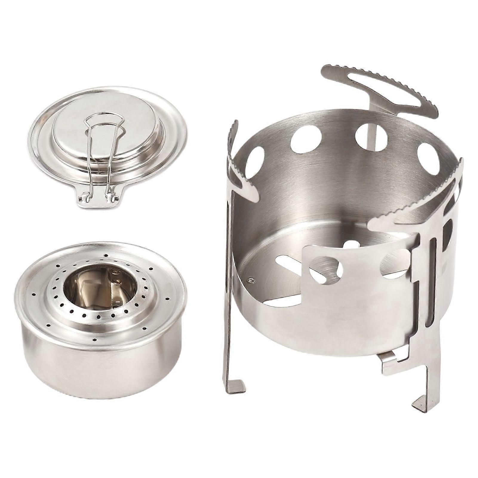2 in 1 Alcohol Stove 130ml Portable Stainless Steel Alcohol Burner Stove with Fire Extinguishing Lid and Windproof Stand for Outdoor CampingYMHC