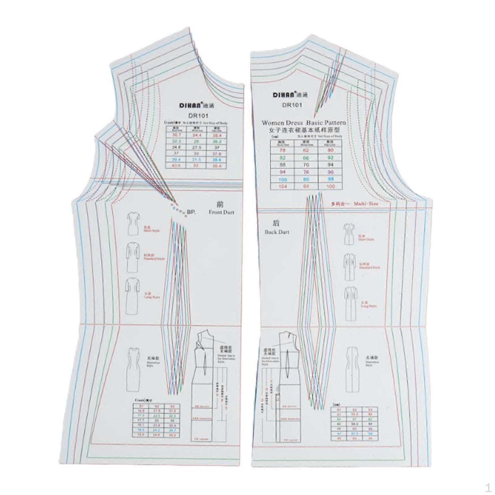 2Pcs Fashion Drawing Template Ruler Dresses Making Transparent Sewing