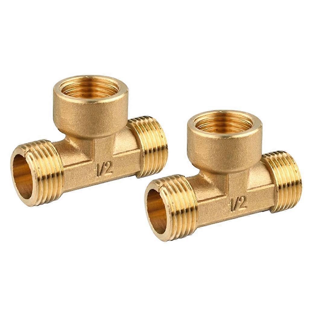 2 Pcs 1/2 inch Copper / Brass Tee Fittings Tube Connectors T-Junction Male Female Male - High and Low Temperature Resistant