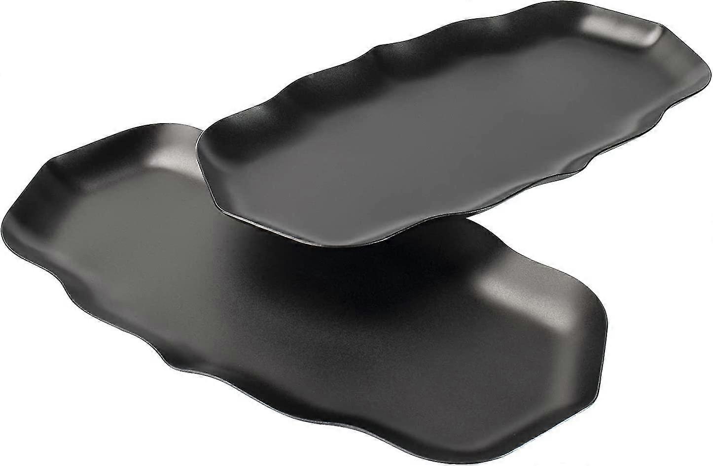 2 Pcs Wave Stainless Steel Towel Jewelry Tray(Black)