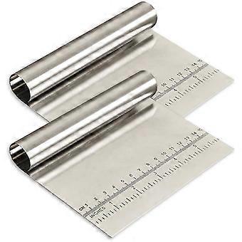 2 Stainless Steel Dough Scrapers with Measuring Scale, Cake Cutter, Pizza Cutter, Bread Separator