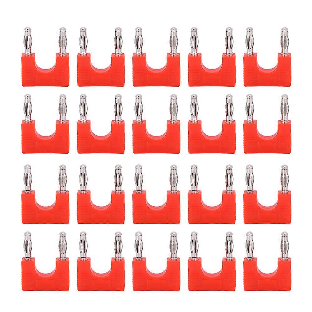 20Pcs Dual Banana Plug Brass Moisture Proof U shaped Audio Adapter Connector 4mm(Red )