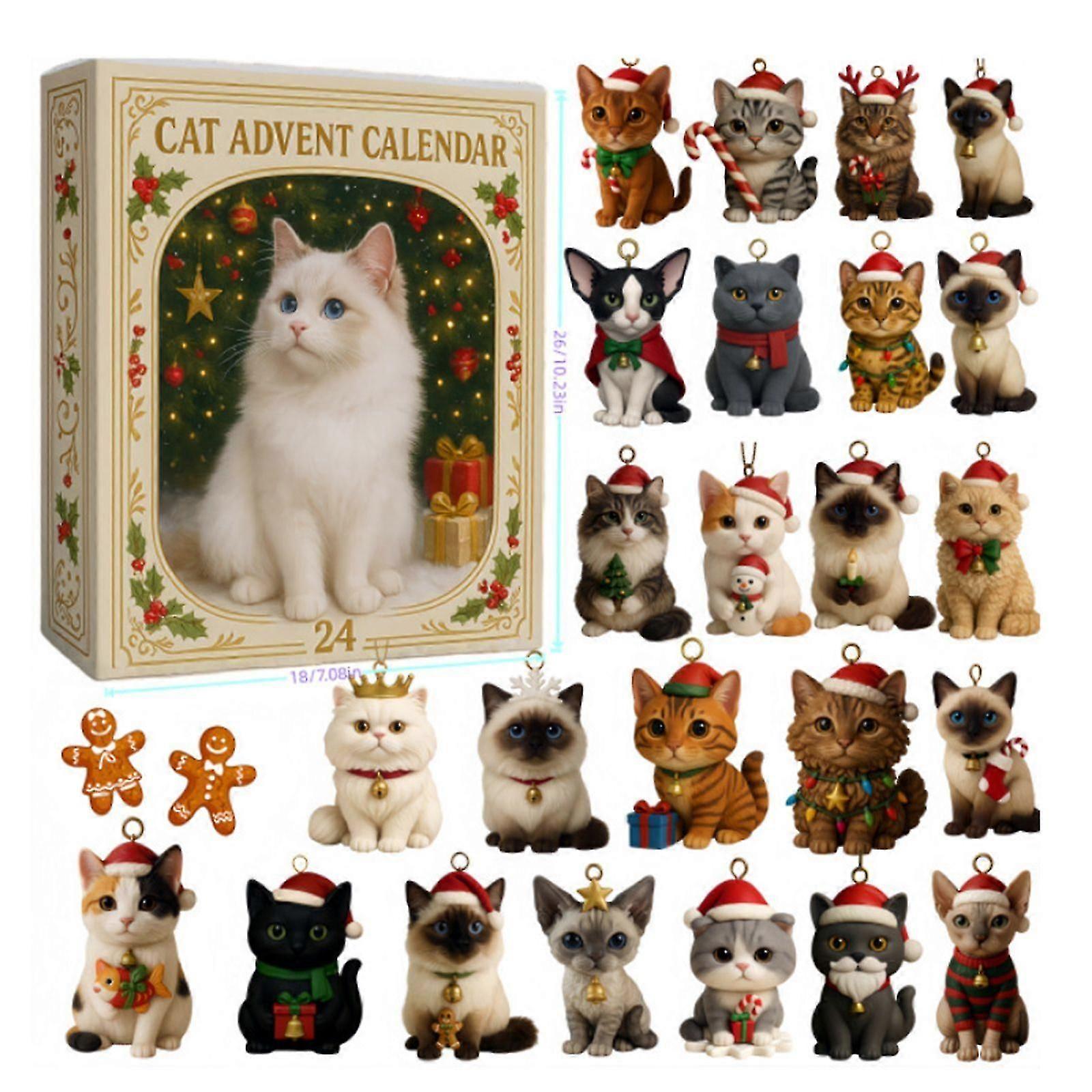 2025 Advent calendar 24 pcs Acrylic Kitten Ornaments, Christmas Countdown Surprise Box Gift for Cat Lovers