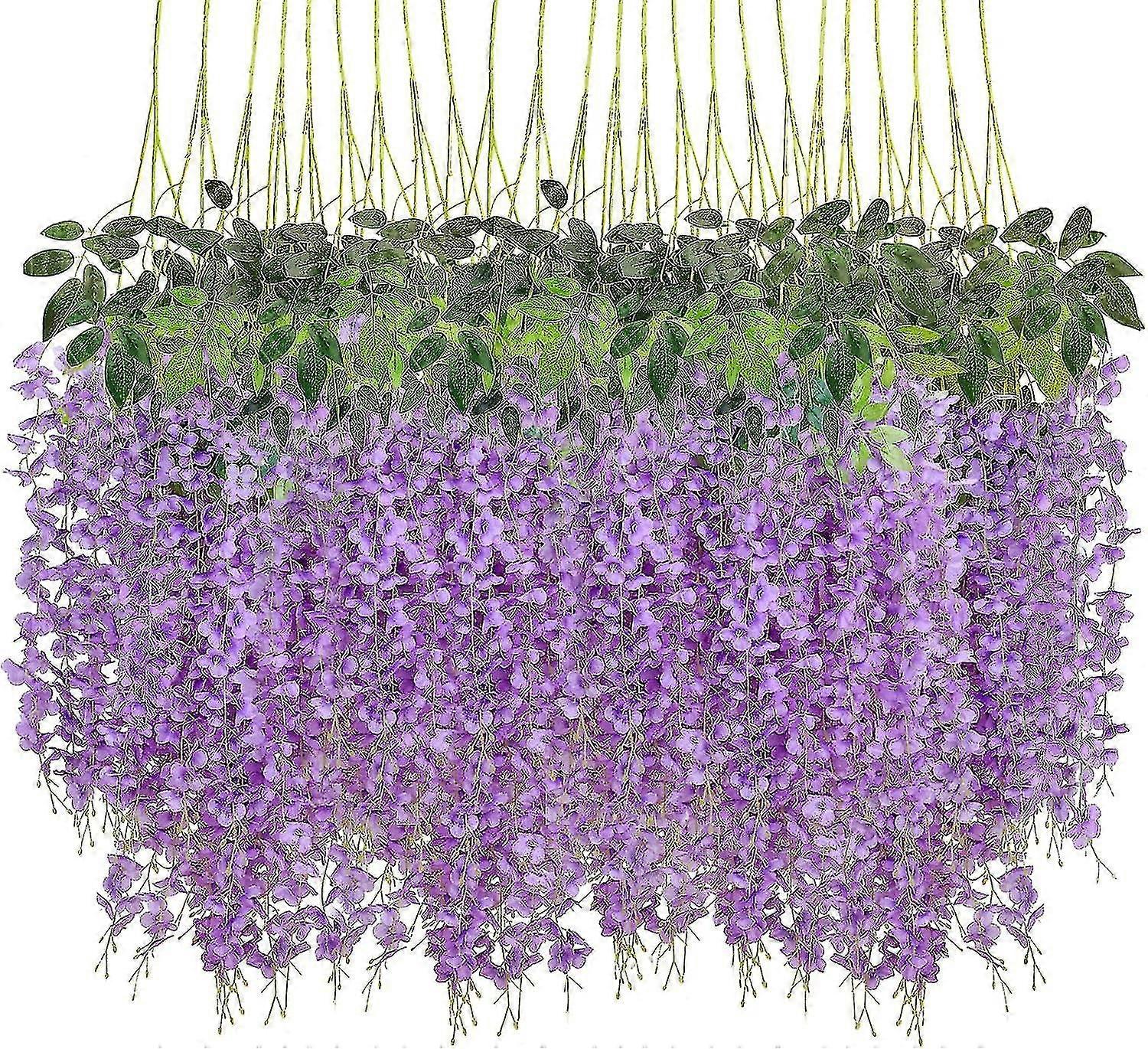 24pcs Wisteria Hanging Flowers Artificial Flowers Wisteria Vine Fake Flowers Hanging Garland Silk Flowers String