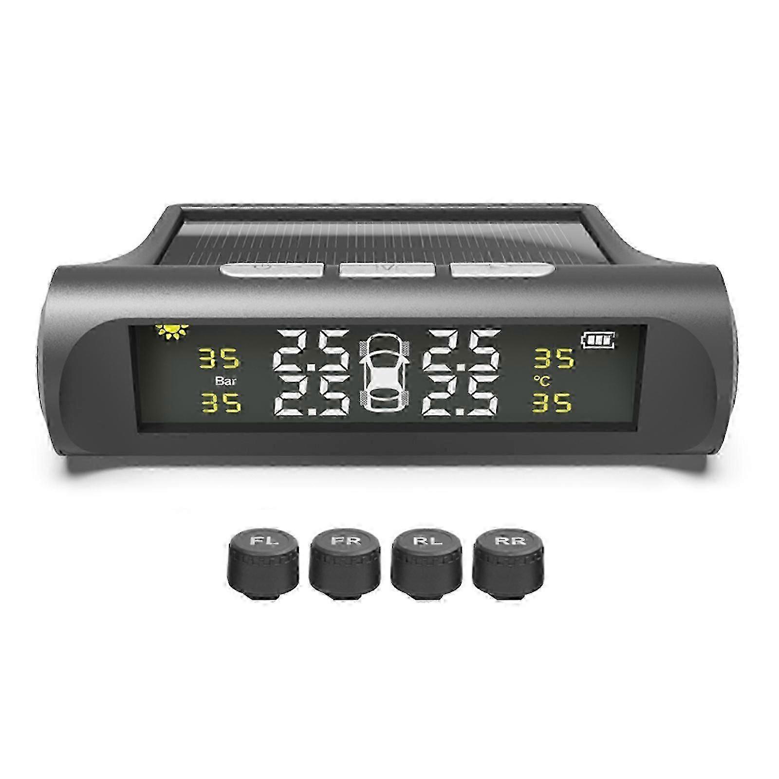 25-26 Car Wireless Solar TPMS LCD Tire Pressure Monitoring System + 4 External Sensors
