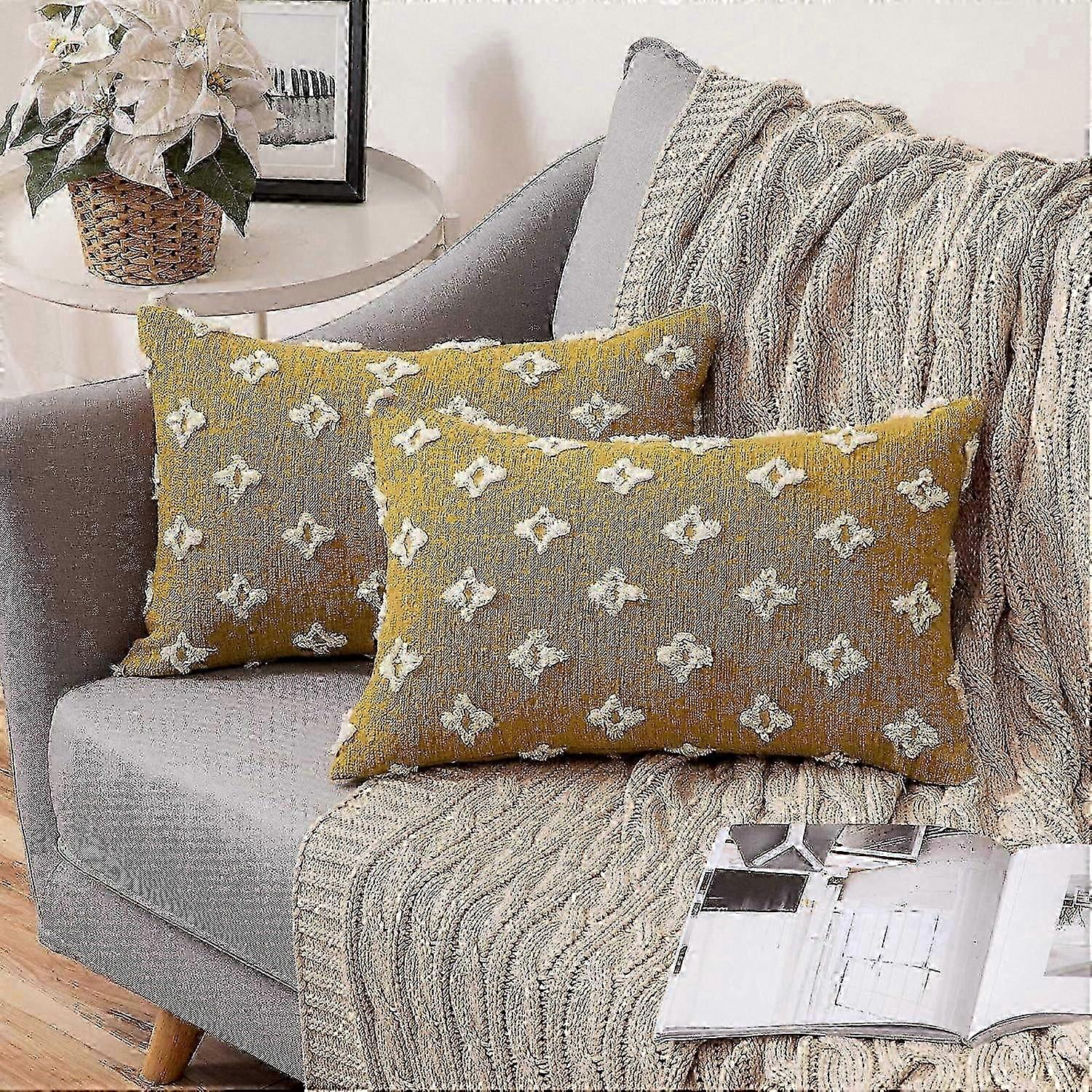 25-26 Set of 2 Decorative Throw Pillow Covers with Rhombic Jacquard Design, Soft Rectangular Cushion Cases for Use on Summer and Fall Couche