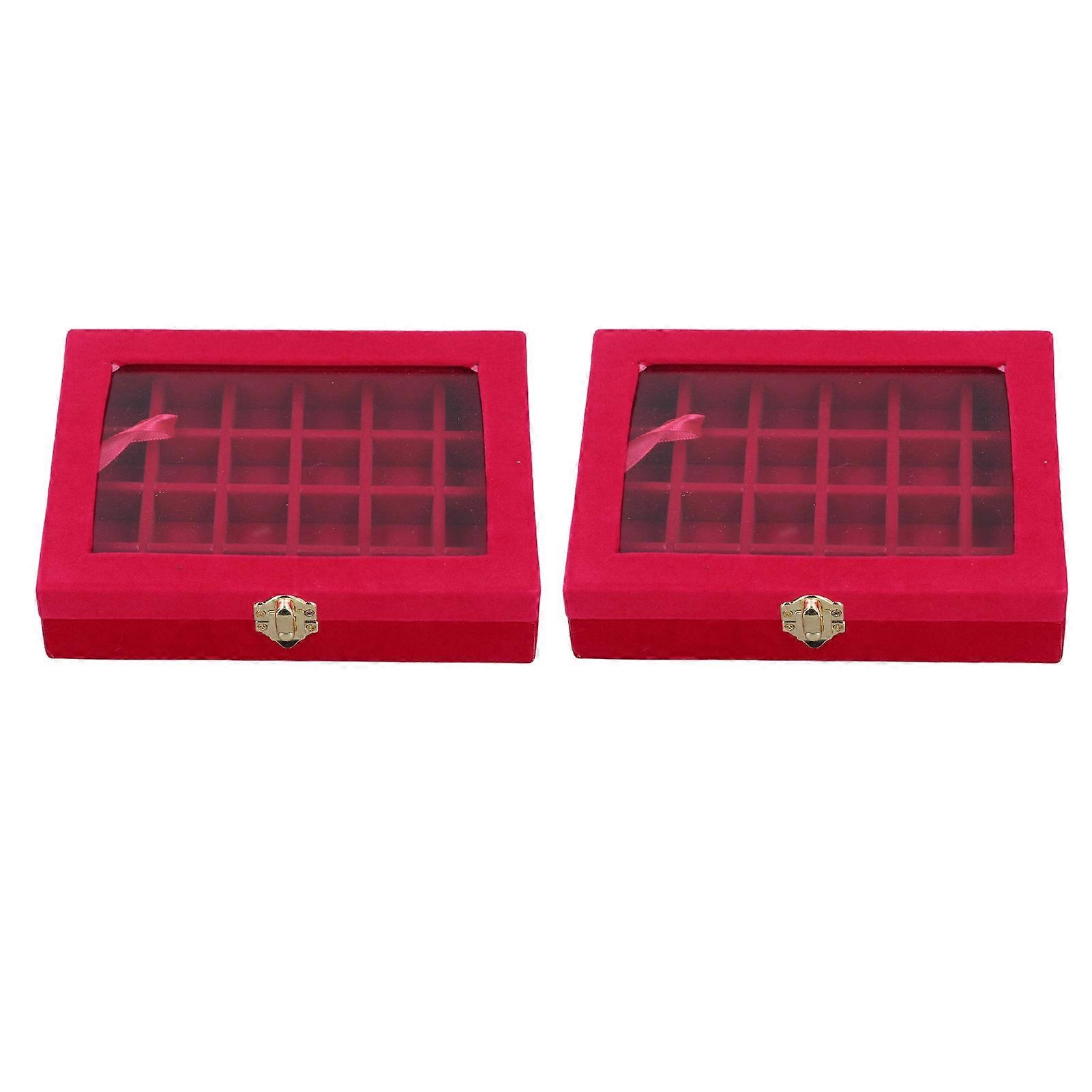 2pcs Velvet Jewelry Box - 24 Grids Display with Transparent Lid for Earrings, Rings