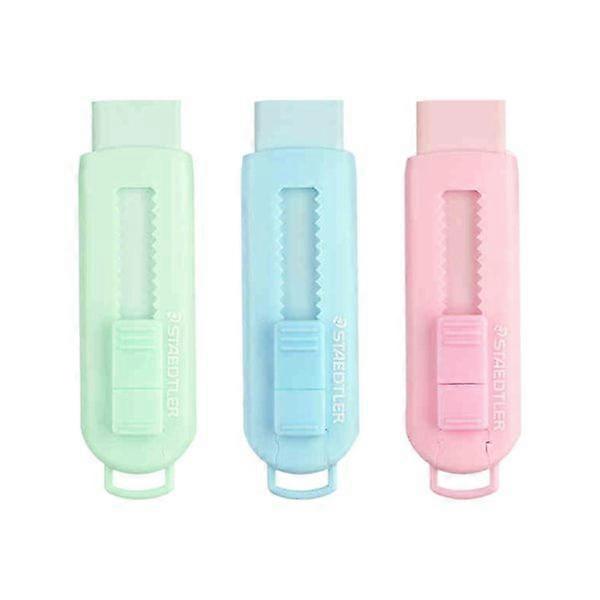 Structure and Design: Retractable pencil eraser with sliding mechanism, easy to use, can erase mistakes on notes, with light pressure, convenient and fast Material Safety: The erasers are made of rubber and plastic casing, which are safe and non-toxic, lightweight but not easy to break and can be used for a long time; they are ideal school supplies for children Wide Application: The eraser can be used to erase mistakes on notes, diaries, letters, etc., perfect for students, office workers, designers, cartoonists, etc. GOOD GIFT: Kawaii erasers can be used as party decorations, classroom rewards, stocking stuffers and Christmas gifts; they make learning more fun What's in the package: You will get 3 pcs retractable aesthetic erasers in 3 colors including green, blue, pink, 1 per color; sufficient quantity and color for your daily need