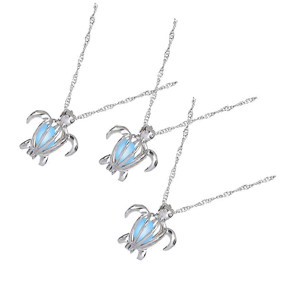 3 Pieces Turtle Shape Pendant Necklace with Luminous Beads Decor for Women Girls in Mixed Color