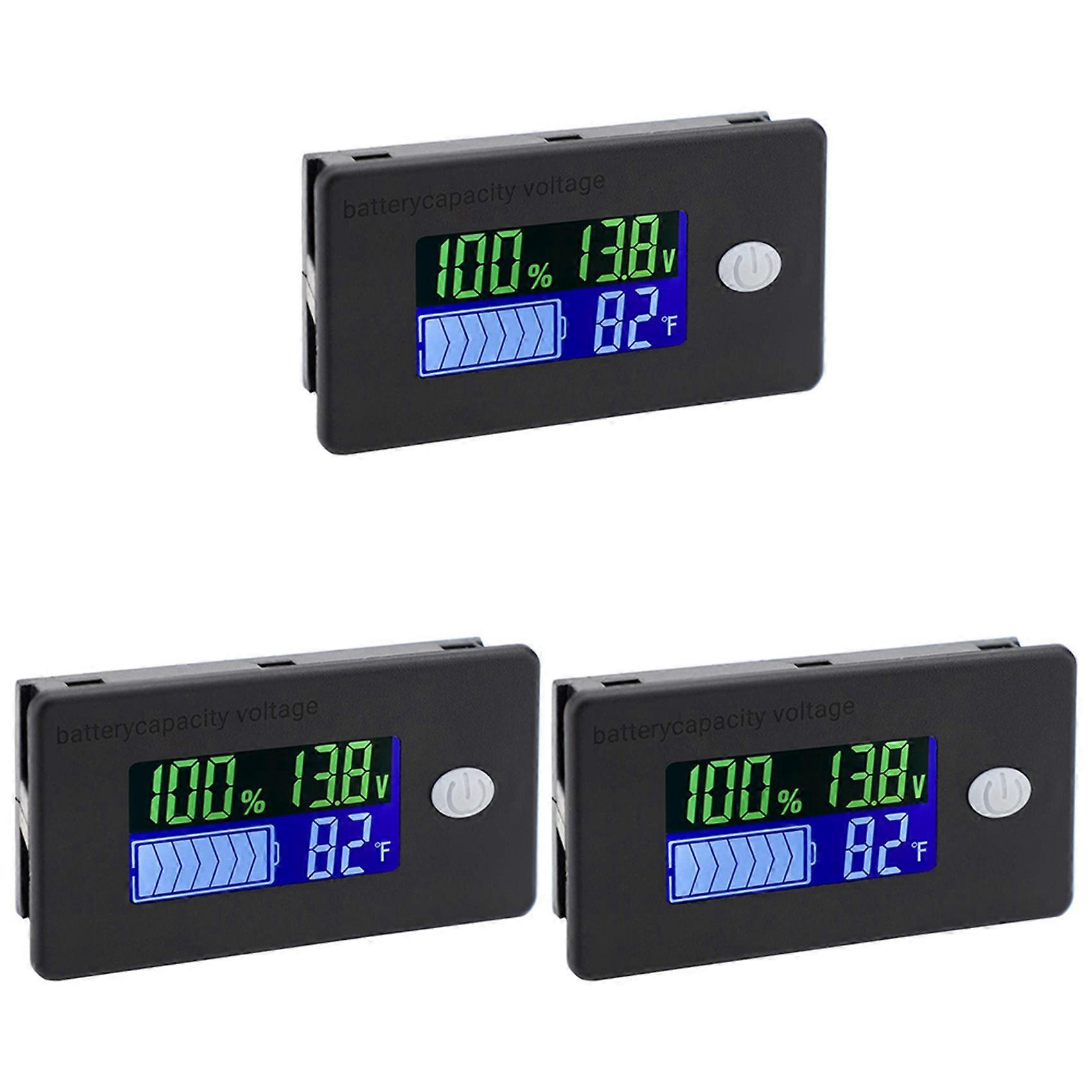 3X Battery Capacity Monitor,10-100V Battery Meter, 12V 24V 48V Percentage Voltage Fahrenheit Temperature Indicator Meter