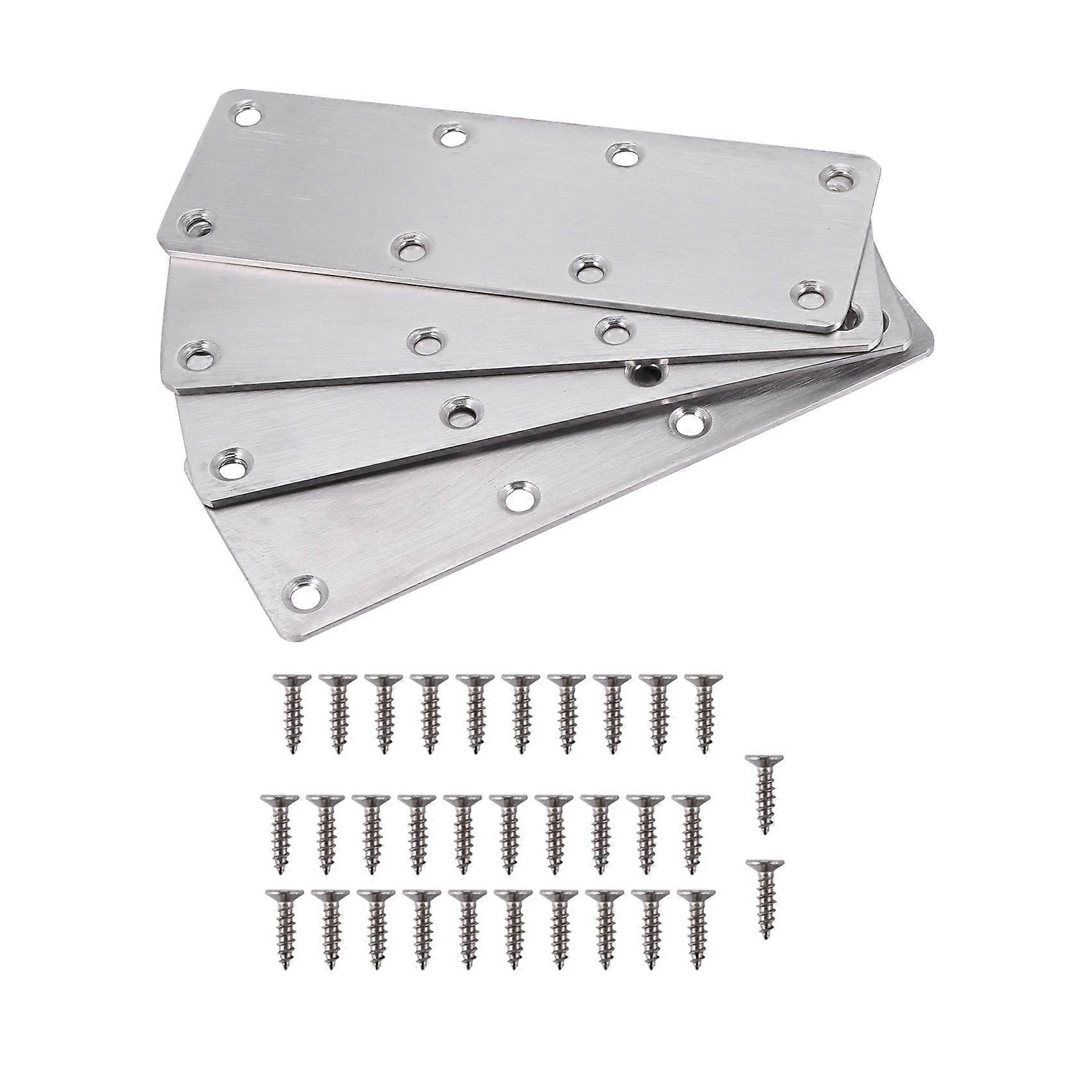 4 PCS Flat Mending Plate Stainless Steel with Screws for Furniture