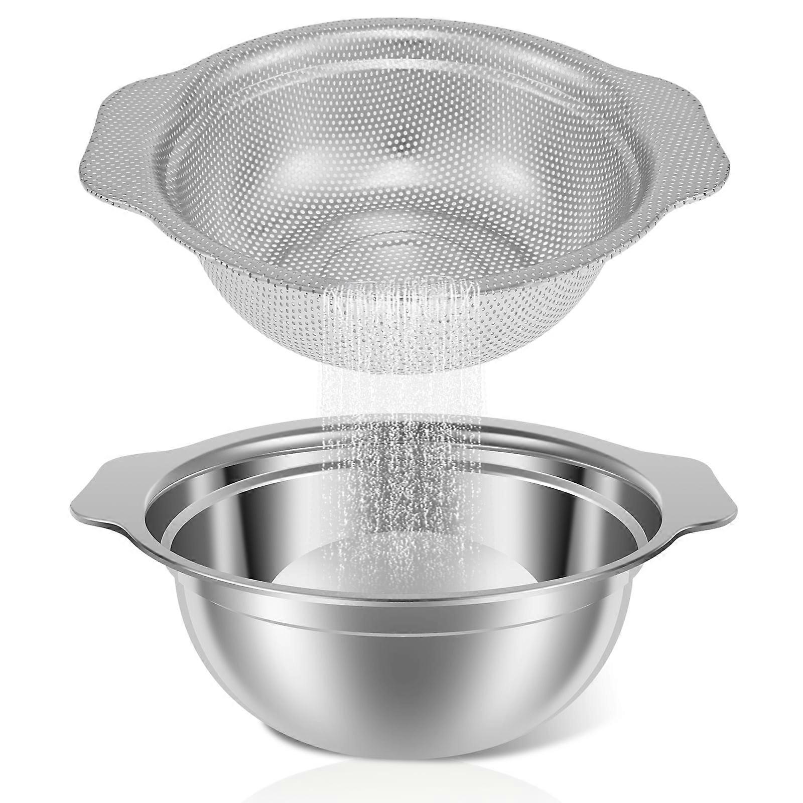4Pcs Stainless Steel Colander Set with Mixing Bowl, Microporous Strainers for Fruits, Vegetables, Pasta - Compatible with Wekvgz