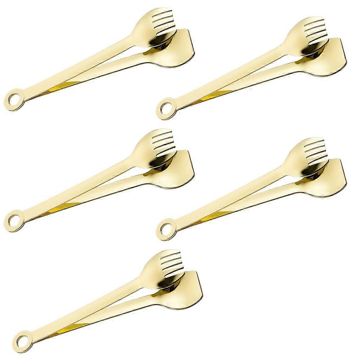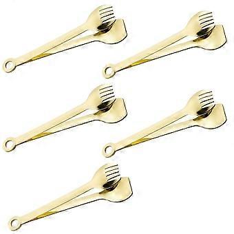 5 sets of gold-plated small service pliersmini appetizer pliers made of stainless steel, 15 cm, gold