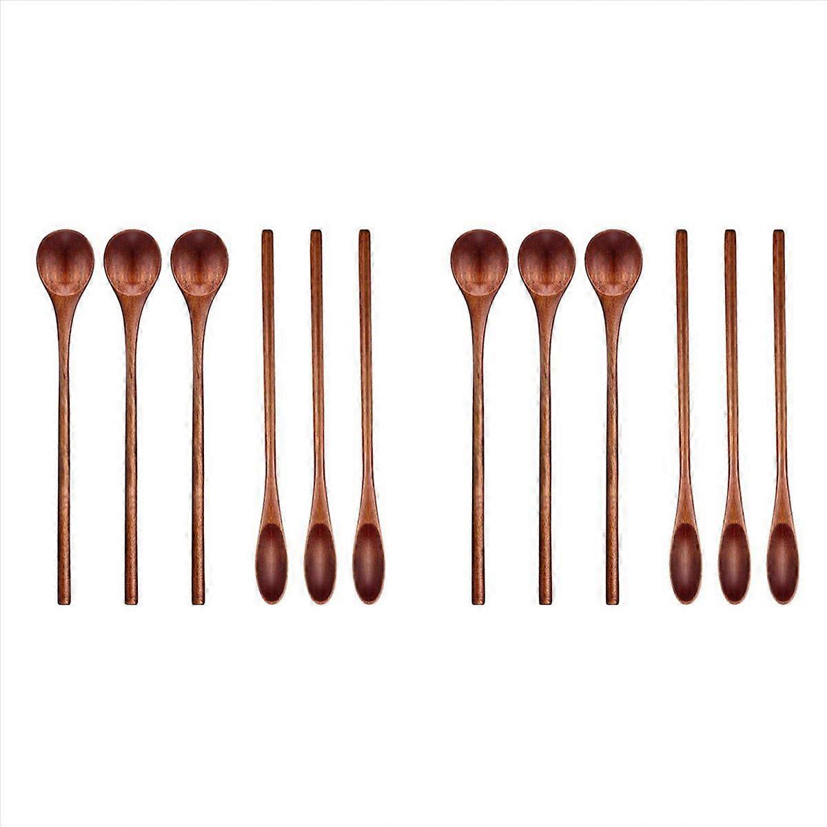 6 Pcs Wooden Coffee Spoon Long Handle Wooden for Kitchen Mixing