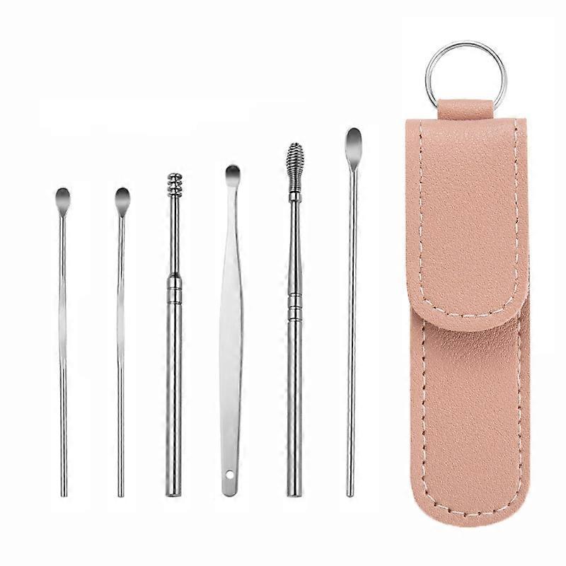 6 In 1 Stainless Steel Spring Spiral Portable Ear Pick, Specification: Pink Leather Case