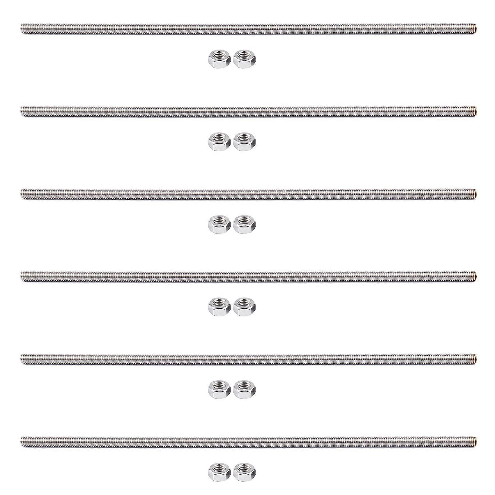 6 Pcs 320mm x M8 Stainless Steel Thread Bar Stock Rod Silver Tone
