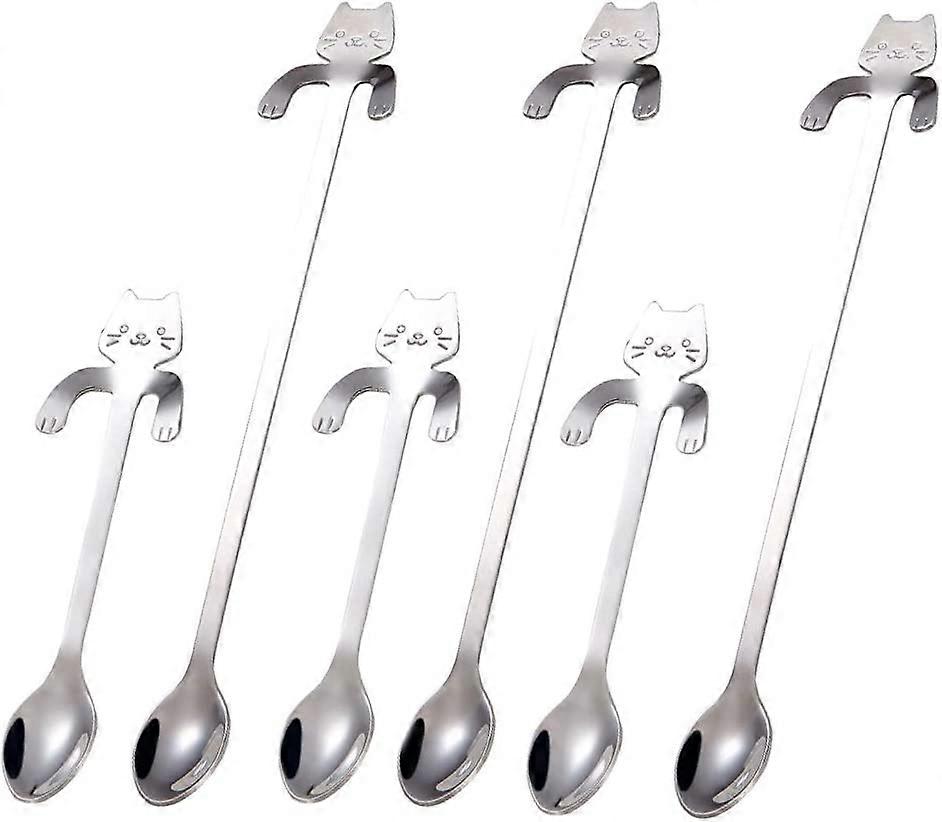 6 PCS Cat Spoon Coffee Tea Spoon Set,Stainless Steel Hanging Cup Teaspoons