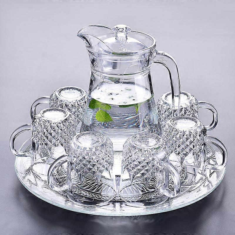 6 Diamond-handled Cups + Duckbill Teapot + Phoenix Tail Tray [Free Cup Brush Included] Default Glass Cups - 6-Piece Household Water Cup Set