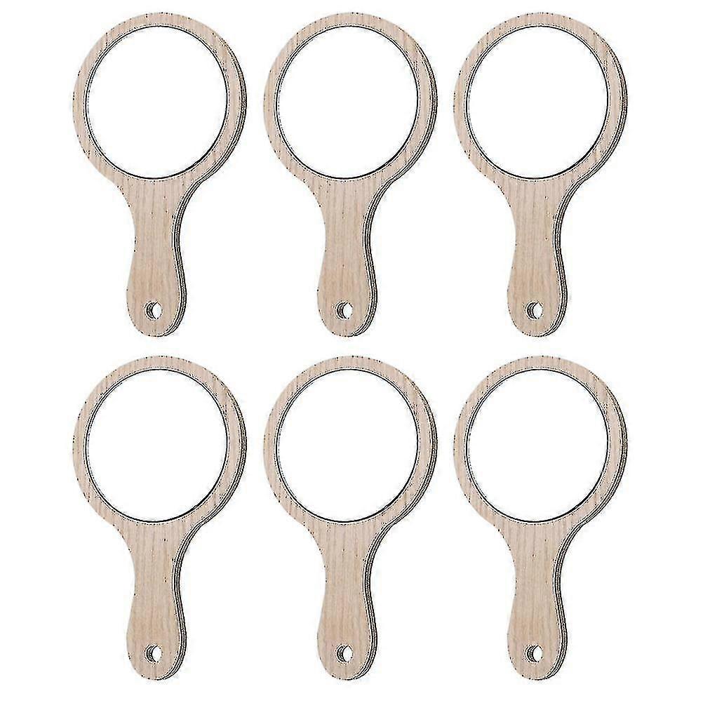 6pcs Wooden Handle Makeup Mirror Handle Mirror Women Mirror Makeup Mirror Clear Women Mirror