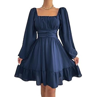 Abito a balze elastico a maniche lunghe in pizzo con colletto quadrato da donna