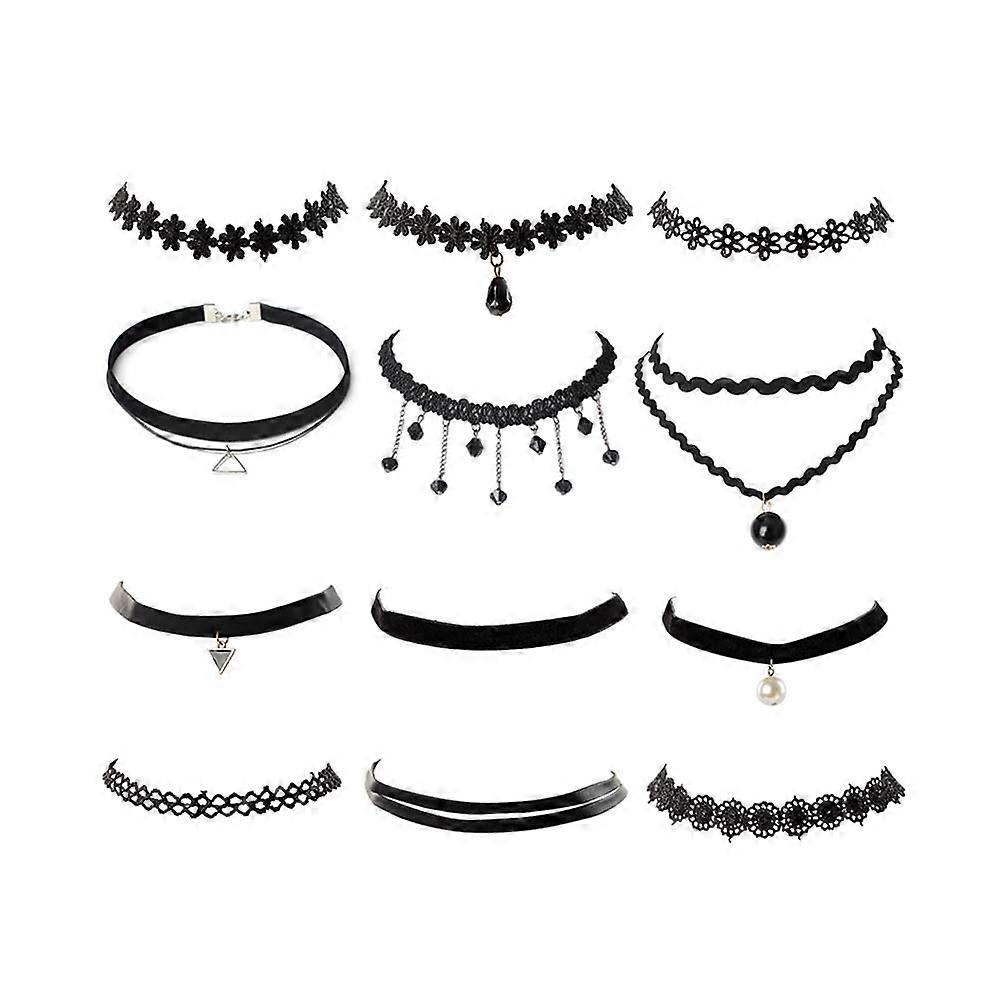 Choker Accessory for Women and Girls in Black Round Shape for Any Occasion 12Pcs