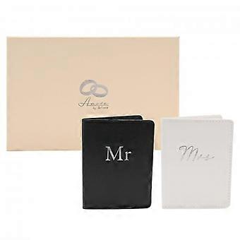 Amore Set of 2 Passport Holders Black & White - 'Mr & Mrs'