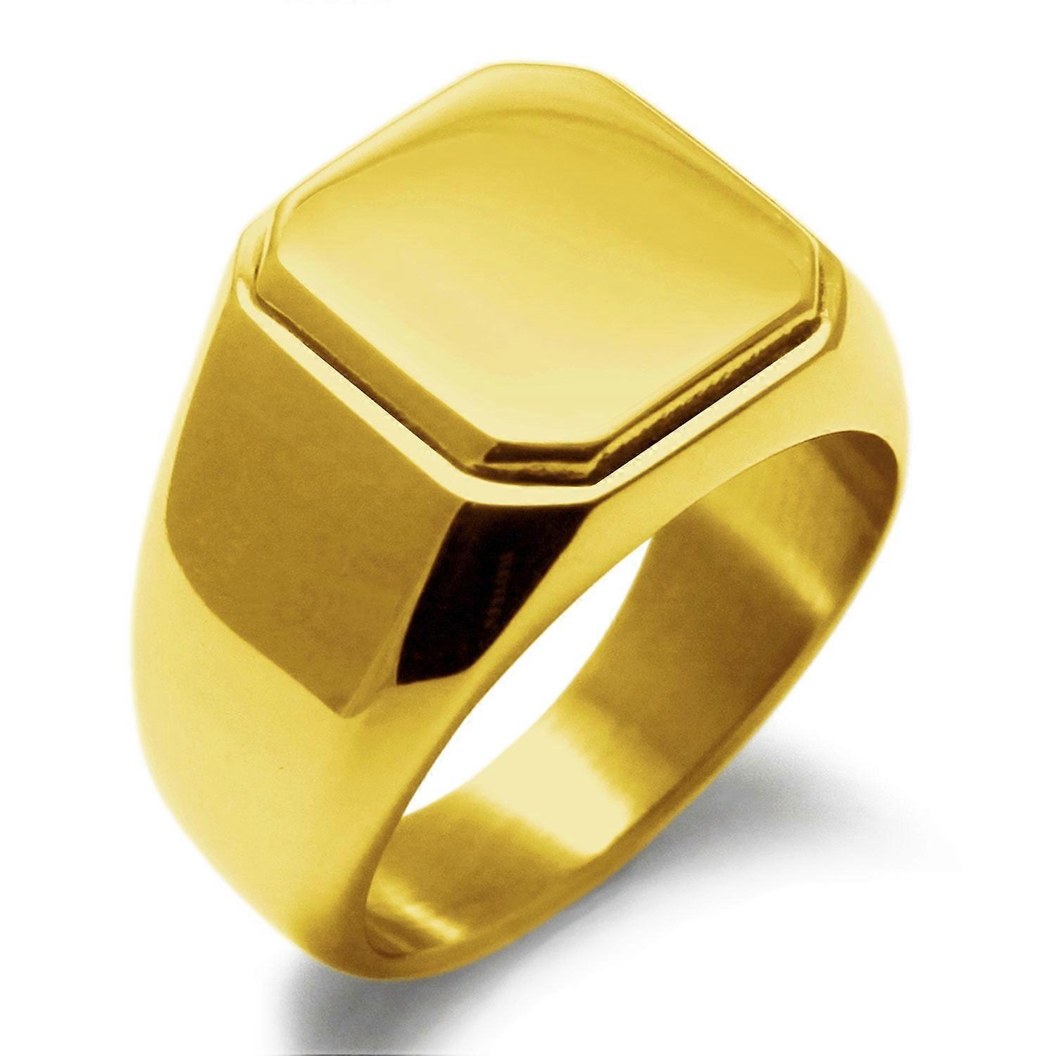 Tioneer Stainless Steel Silver, Black, Gold Square Flat Top Biker Style Polished Signet Ring