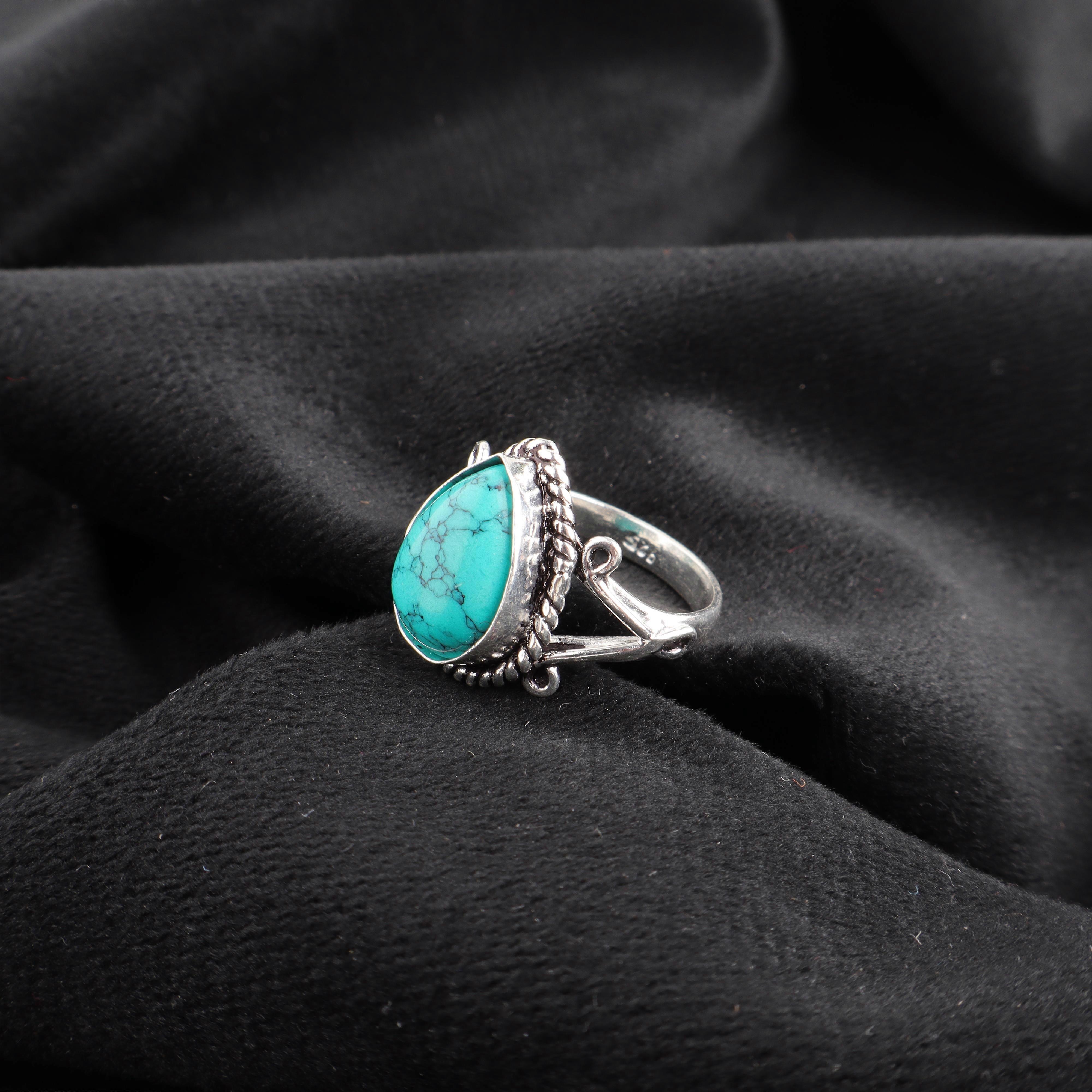Blue Turquoise Handmade Gemstone Ring, 925 Solid Sterling Silver Bohemian Jewelry, Attractive Silver Ring Gift For Wife