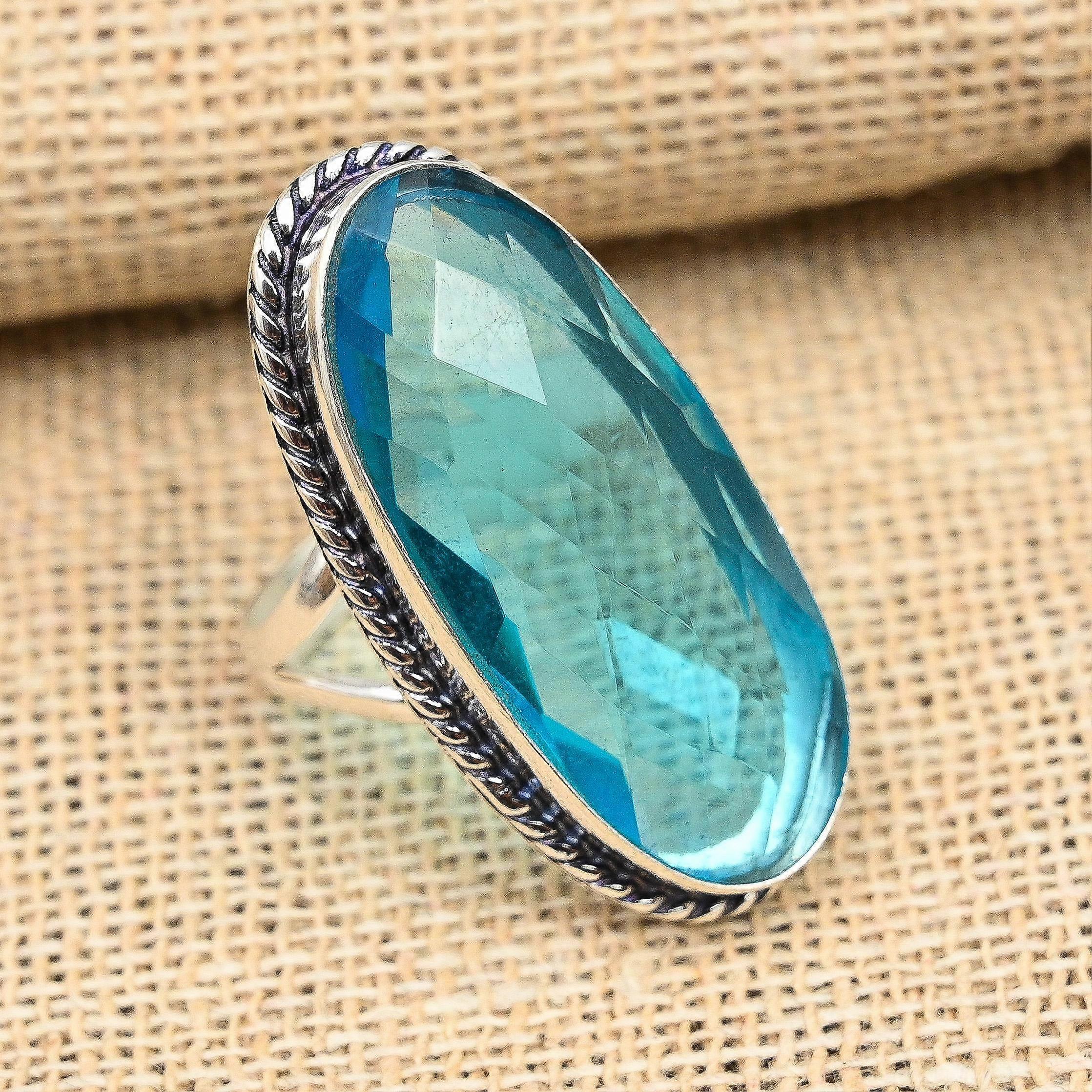 Amazing Blue Topaz Gemstone Handmade 925 Sterling Silver Ring Jewelry
