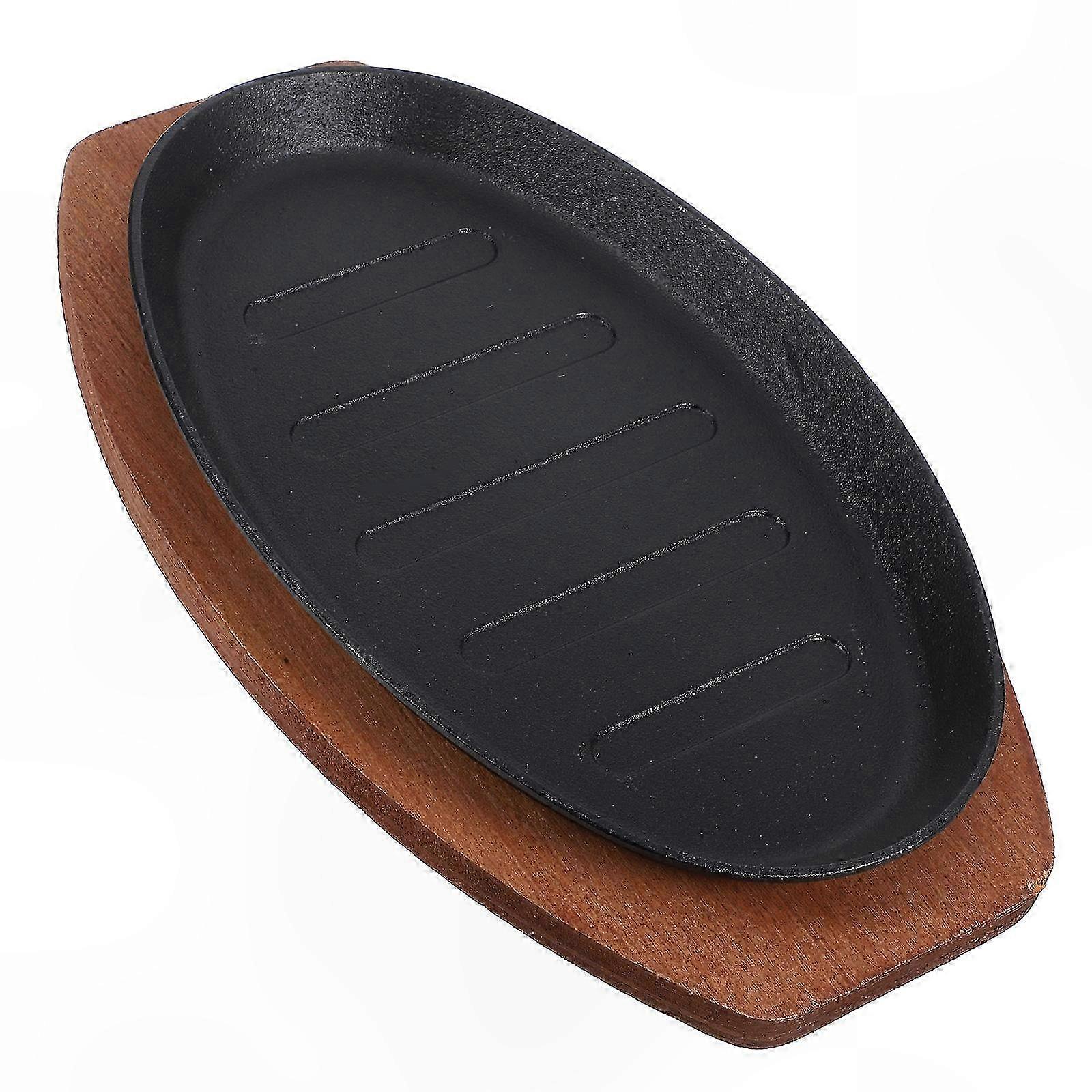 Assorted Color Metal Steak Plate with Wooden Tray for Kitchen Use Easy to Clean