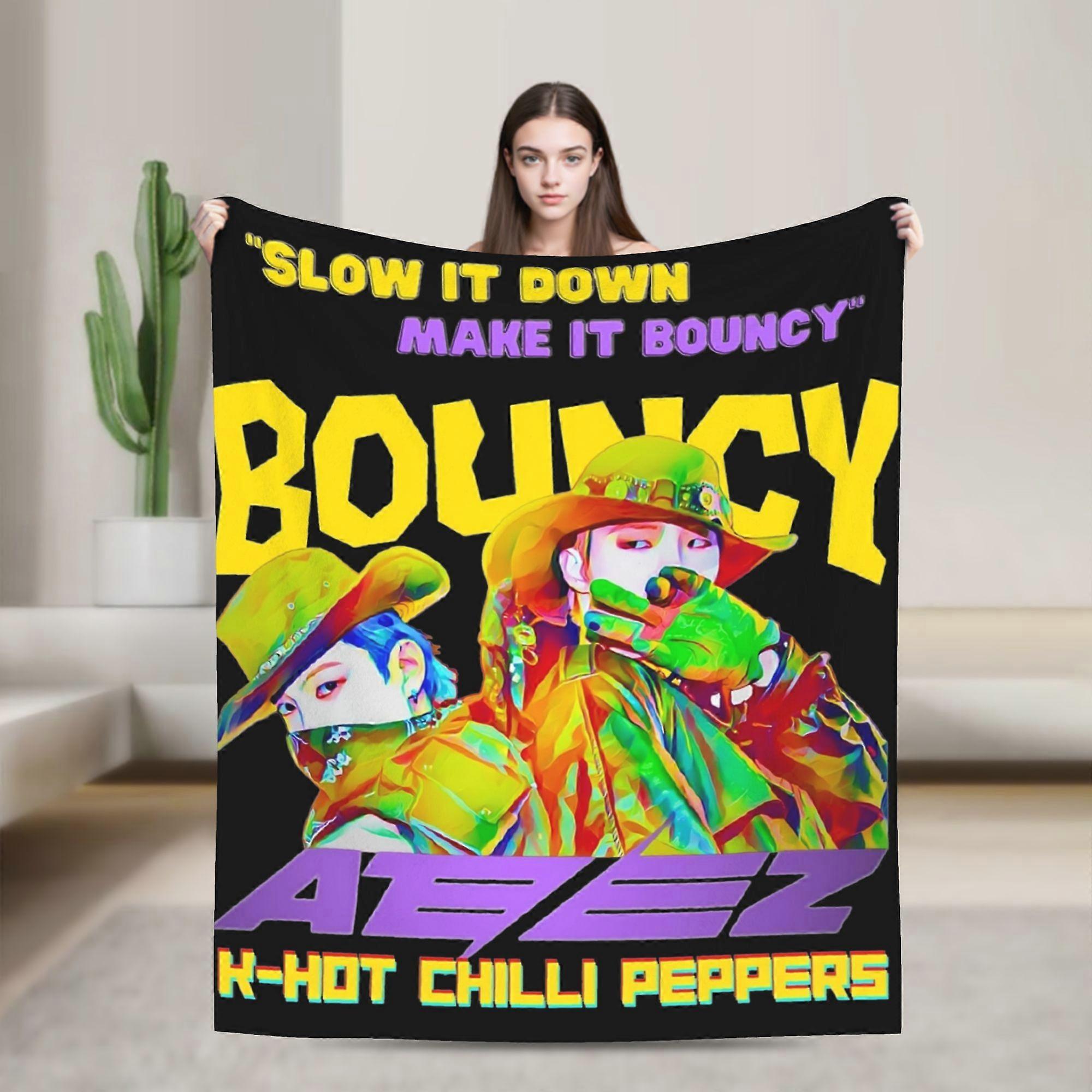 Ateez Bouncy Funk Pop Blankets Coral Fleece Plush Print Breathable Ultra-Soft Throw Blankets for Bed Couch Bedding Throws