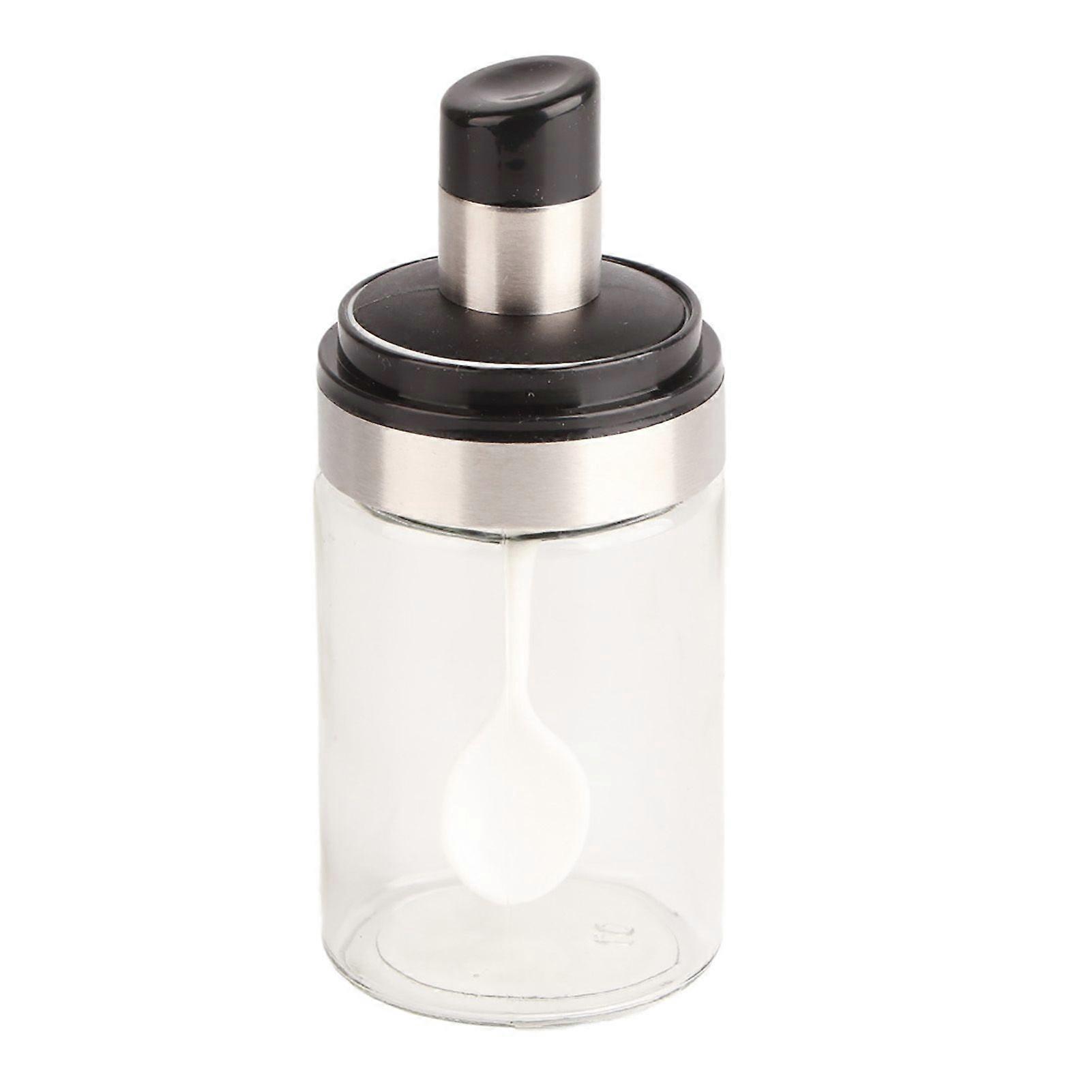 Transparent Glass Seasoning Jar Salt Pepper Seasoning Pot Bottle with Spoon for Kitchen Use