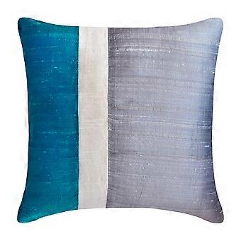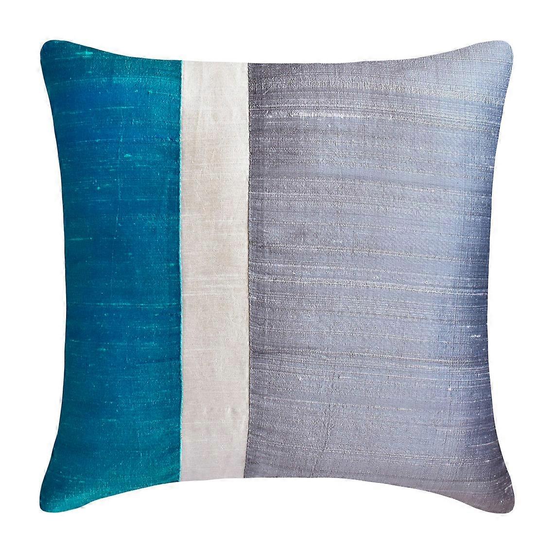 Blue & Grey 18"x18" Throw Pillow Covers, Silk Color Block Patchwork, Modern Style for Sofa - Splendour Blue